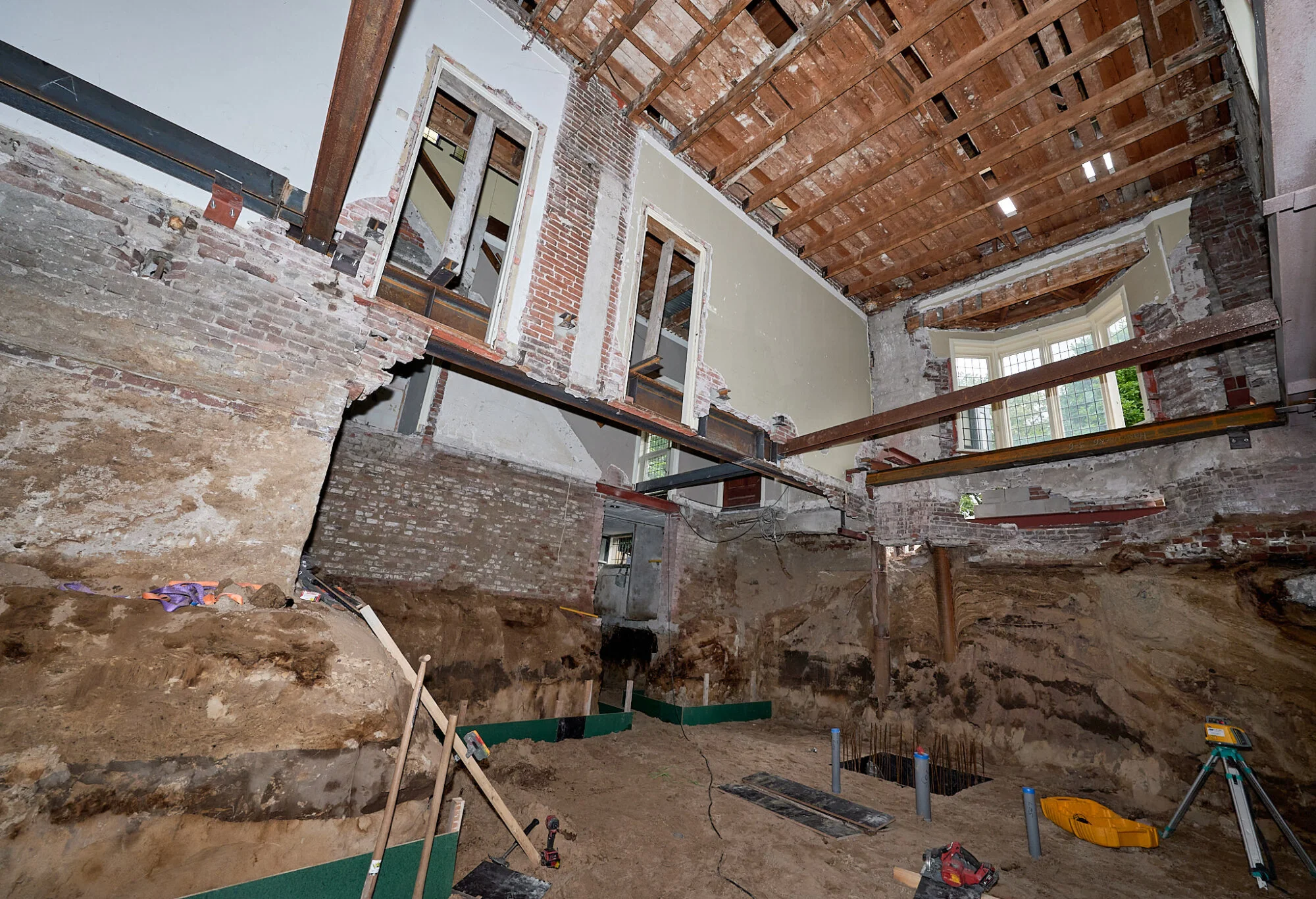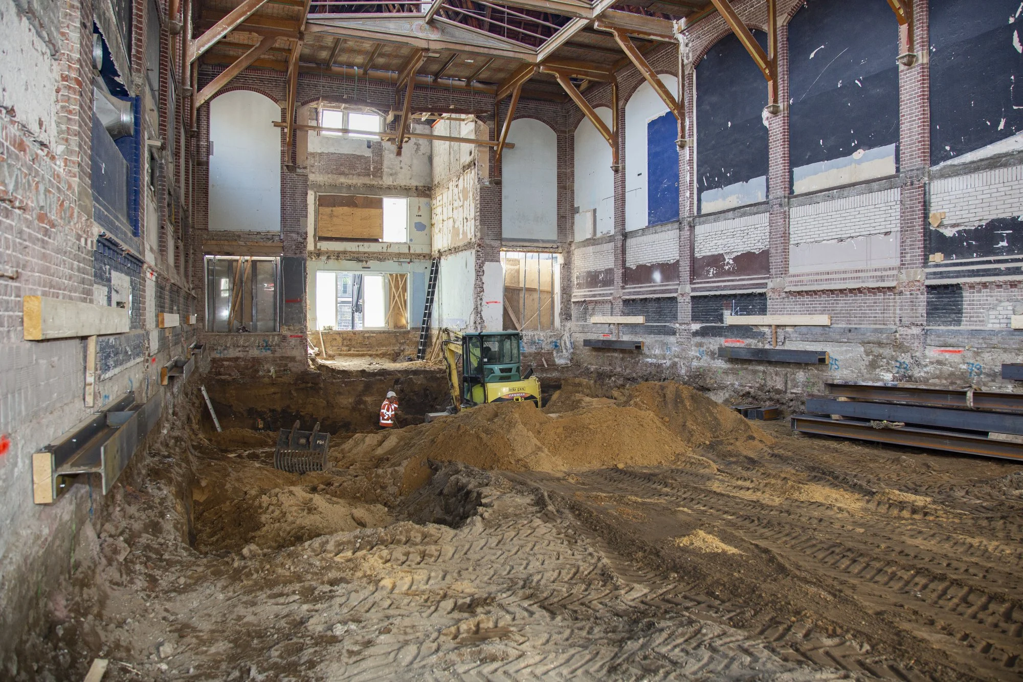 Soil-ID heeft kelders,ook van grote afmetingen, niet zelden in kwetsbare monumenten gerealiseerd. Onder meer in Arnhem (op de foto, de Korenbeurs), Vught (Zionsberg en ook Villa Vught) Apeldoorn en vele andere gemeenten.