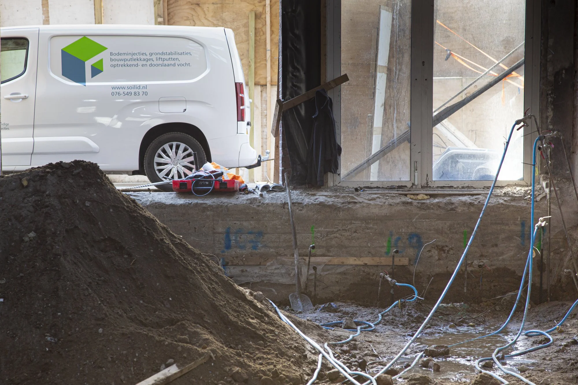 Het bouwen van parkeer- of andere kelders pal naast of onder bestaande gebouwen is echter van een andere orde. In plaats van horizontale waterglasinjecties maken we voor kelderbouw gebruik van verticale injecties. Ook de samenstelling en daarmee de duurzaamheid van de injectievloeistoffen verschilt. Het waterglastapijt onder een bouwput lost na ongeveer een jaar op in de grond. De stabiliserende injecties voor kelderbouw gaan minimaal 50 jaar mee.