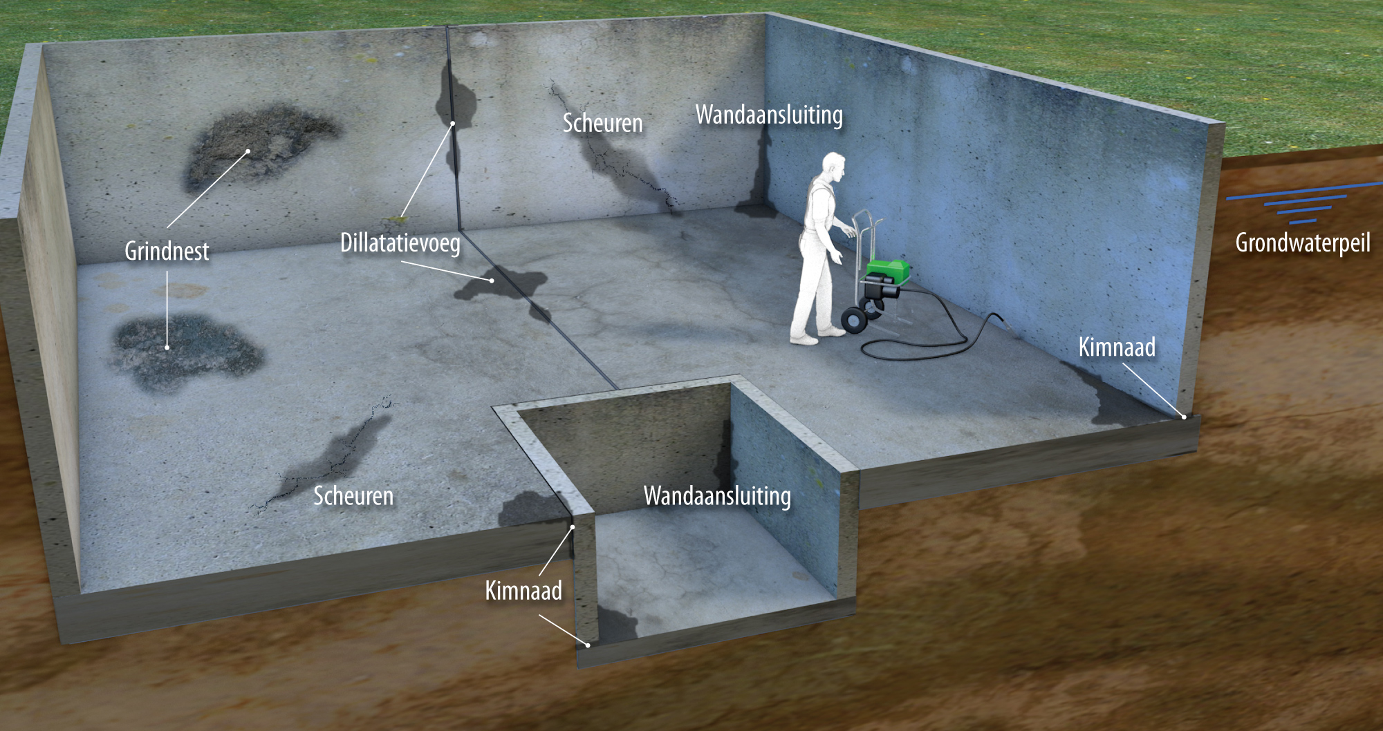 Een van de specialiteiten van Soil-ID is kelderrenovatie. De grootste problemen waarmee kelders hebben te kampen: doorslaand of optrekkend vocht door muren en vloeren van beton of metselwerk pakken we aan met specialistische technieken.