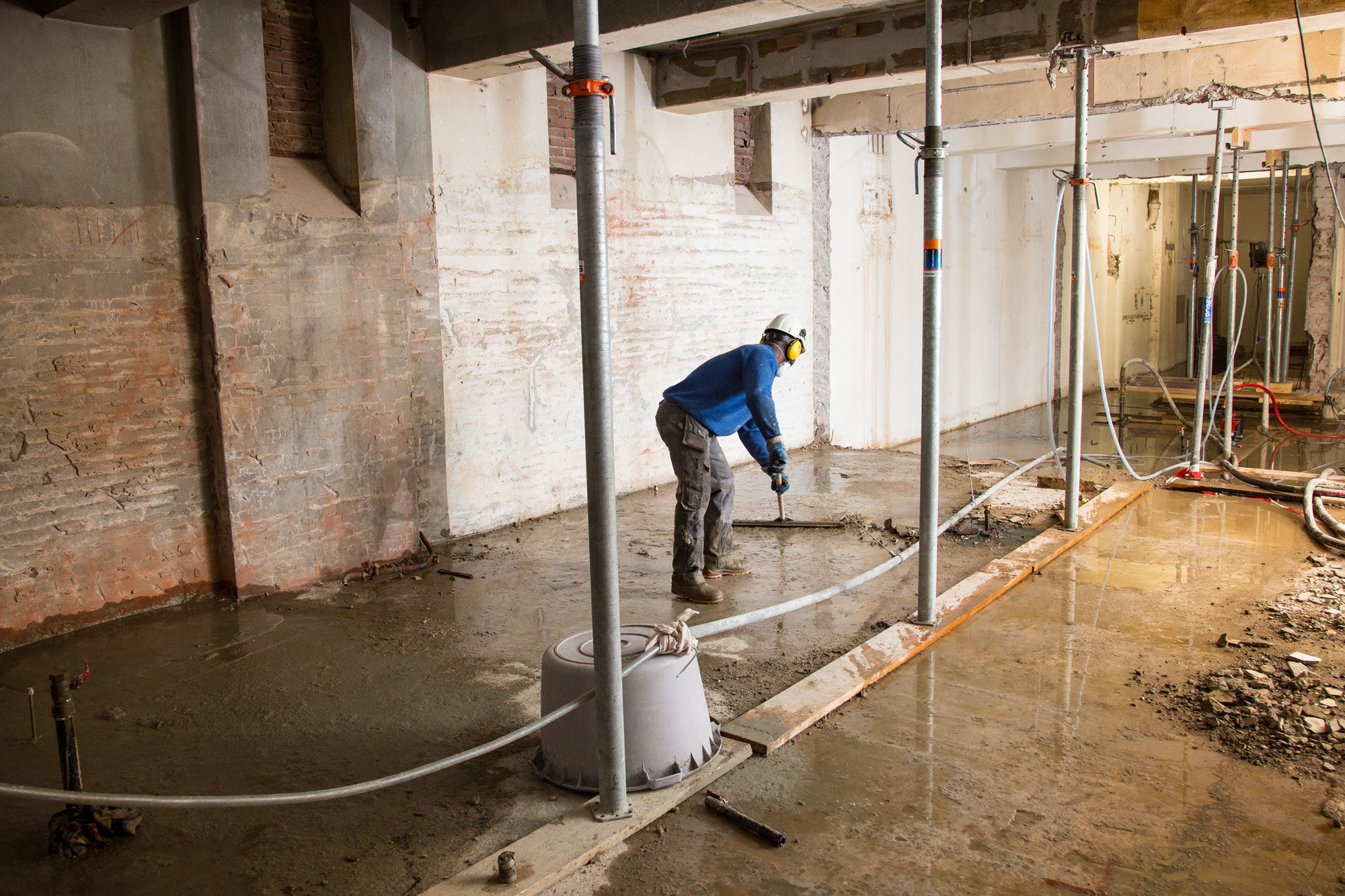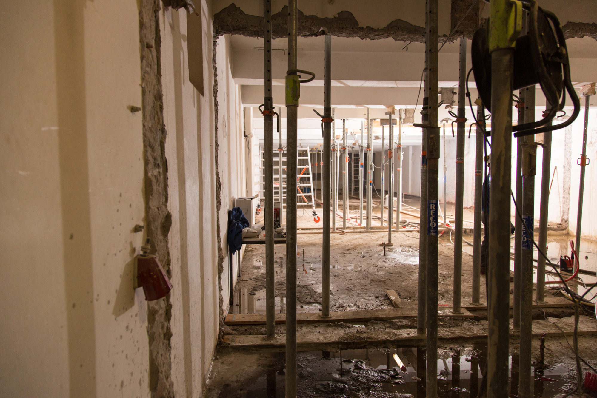 De aanpassingen van de bestaande keldervloer zijn onze eerste werkzaamheden ten behoeve van de warenhuizen in opdracht van de Ivy Group. “De komende tijd zullen er extra heipalen, lift- en roltrapputten en nieuwe poeren worden aangebracht in en onder de bestaande keldervloer. Ook deze werkzaamheden zijn complex in verband met grondwaterstanden e.d.”, schrijft het architectenbureau. Complex? Dat klopt.