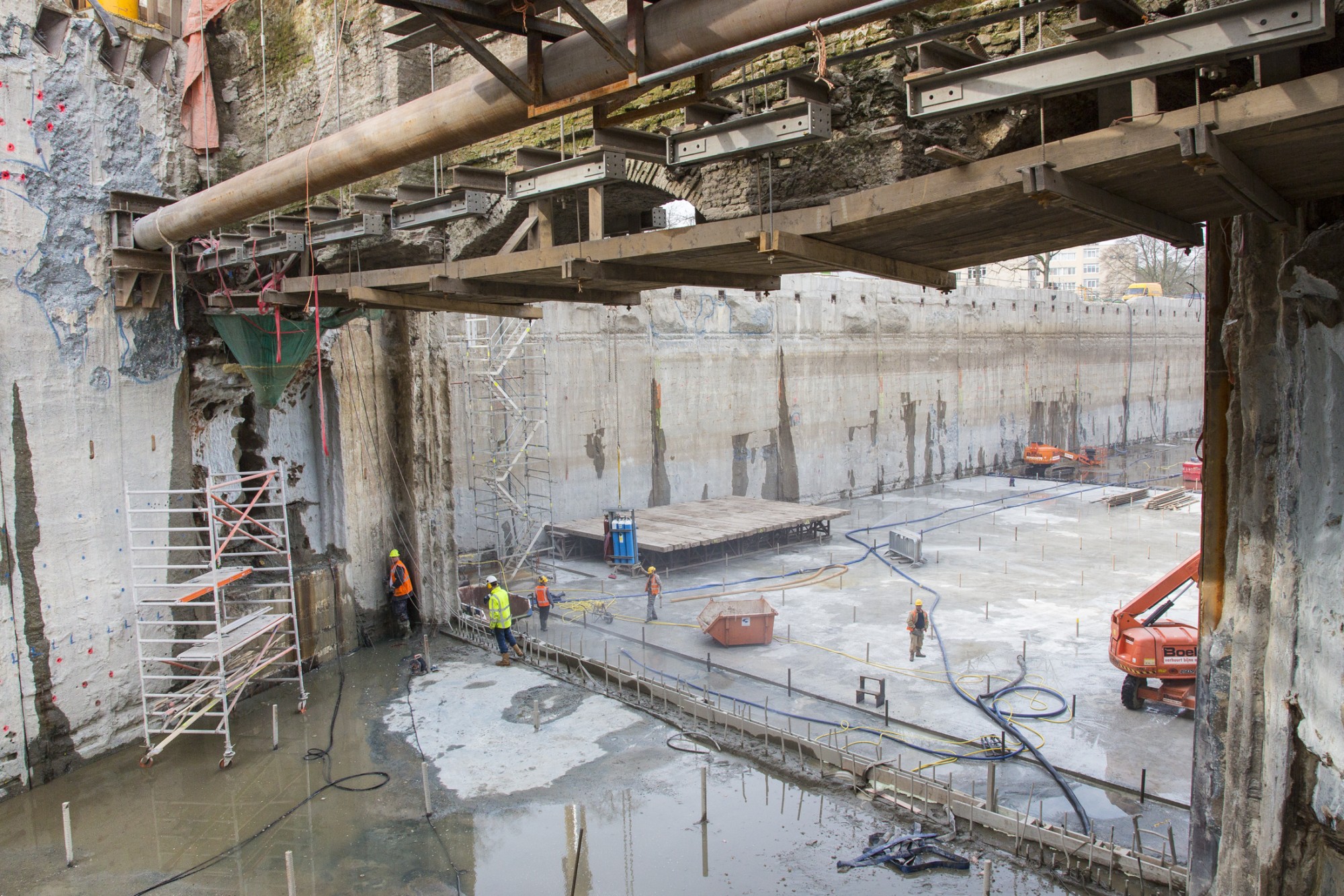 De mix van bouwtechnieken en de natuurlijke omgeving die na afloop een parkachtige allure krijgt, het opnemen van de oude stadswallen in het concept, dat alles maakt het tot een gecompliceerd karwei. De aannemer heeft bij voorbaat daarom ook het ontstaan van lekkages ingecalculeerd. Het is aan Soil-ID Vochtwering en Bouwputlekkages om de aansluitingen van het onderwaterbeton en de diepwanden dicht te maken. Lekkages in het onderwaterbeton worden eveneens gedicht, net als lekkages in de diepwanden zelf en de verankeringen daarvan. De groutanker-koppen behandelen we en de aansluiting van de jetgrouting op de diepwanden wordt eveneens gedicht. De ingezette technieken zijn: injecties met acrylaatgels en pur-schuimen.