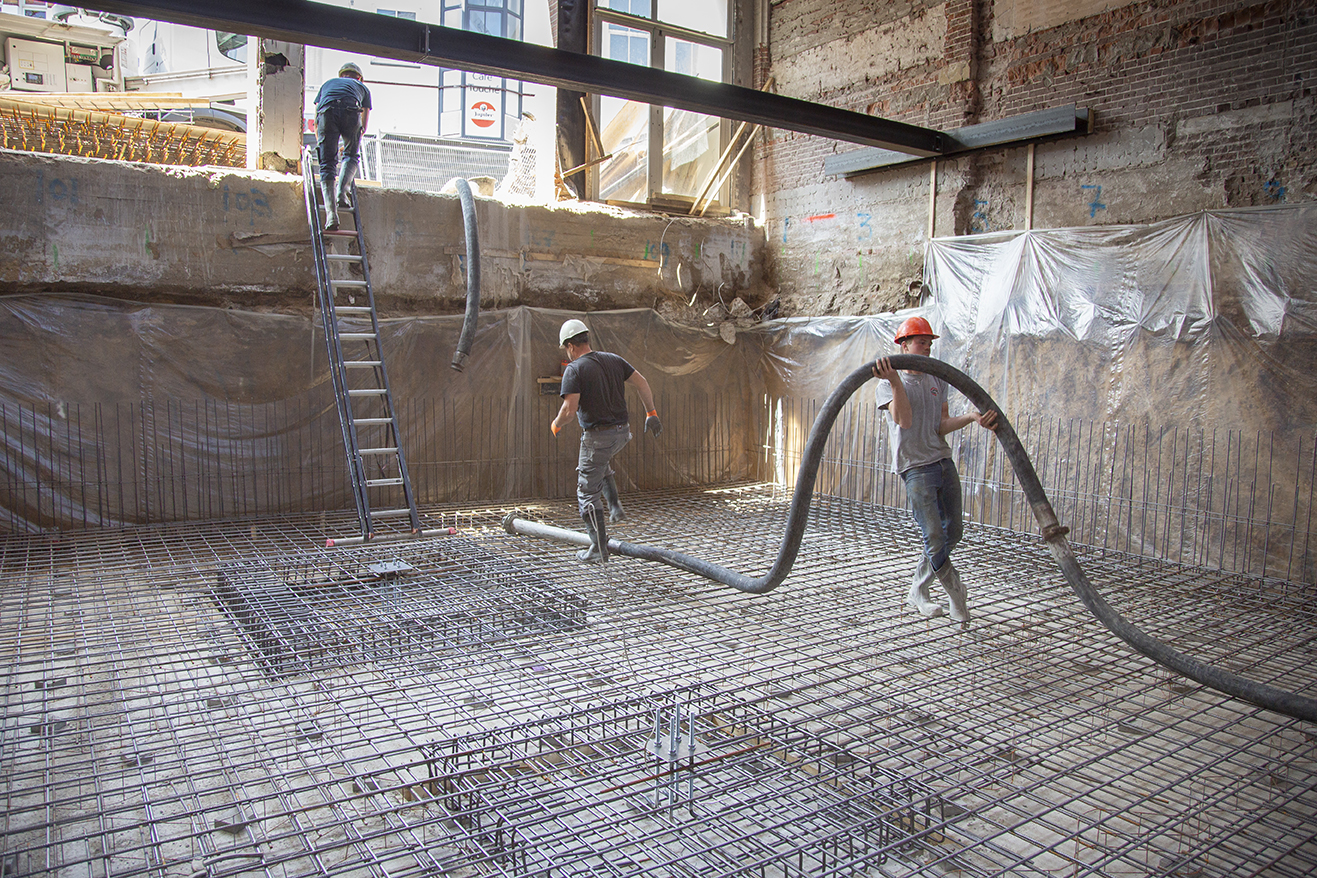 Zodra de bouwput op diepte is uitgegraven worden de keldervloer en -wanden van beton gerealiseerd. Ook dat onderdeel van het werk neemt Soil-ID voor zijn rekening.