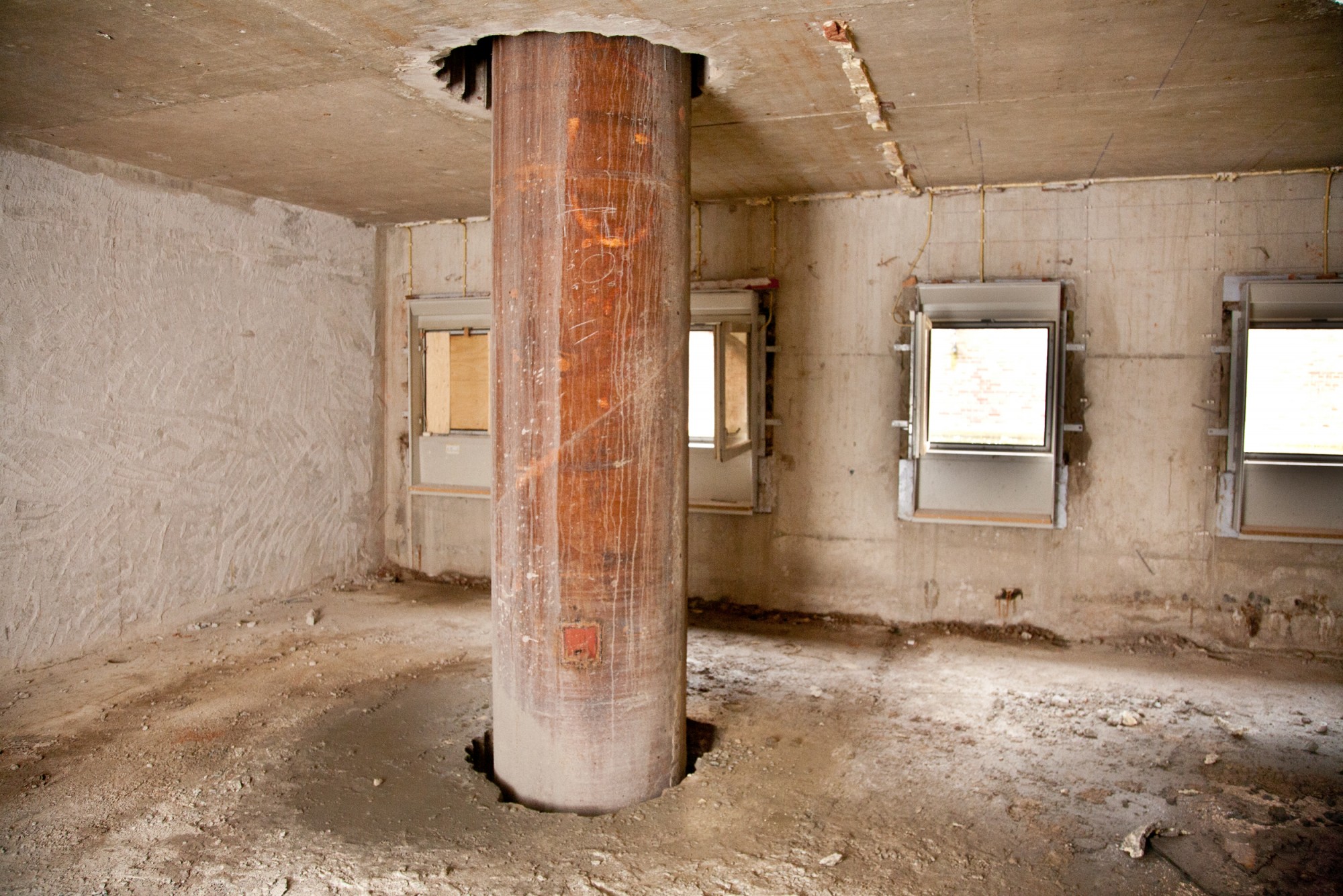 De casingbuizen worden verlengd tot een hoogte van (in dit geval) minimaal 6 meter boven de bestaande keldervloer. De consequentie daarvan is dat enkele verdiepingsvloeren moesten worden doorboord om het gewenste niveau te bereiken.