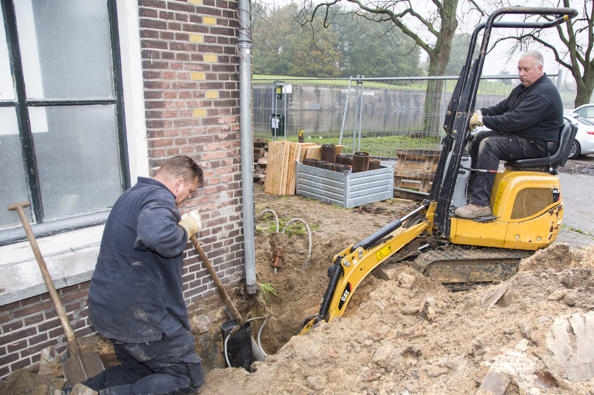 Rond de palen wordt een bekisting geplaatst die vol beton wordt gestort. Omdat alle activiteiten onder het maaiveld plaatsvinden kan de draagconstructie daarna met tuinaarde of tegelgrond worden bedekt.