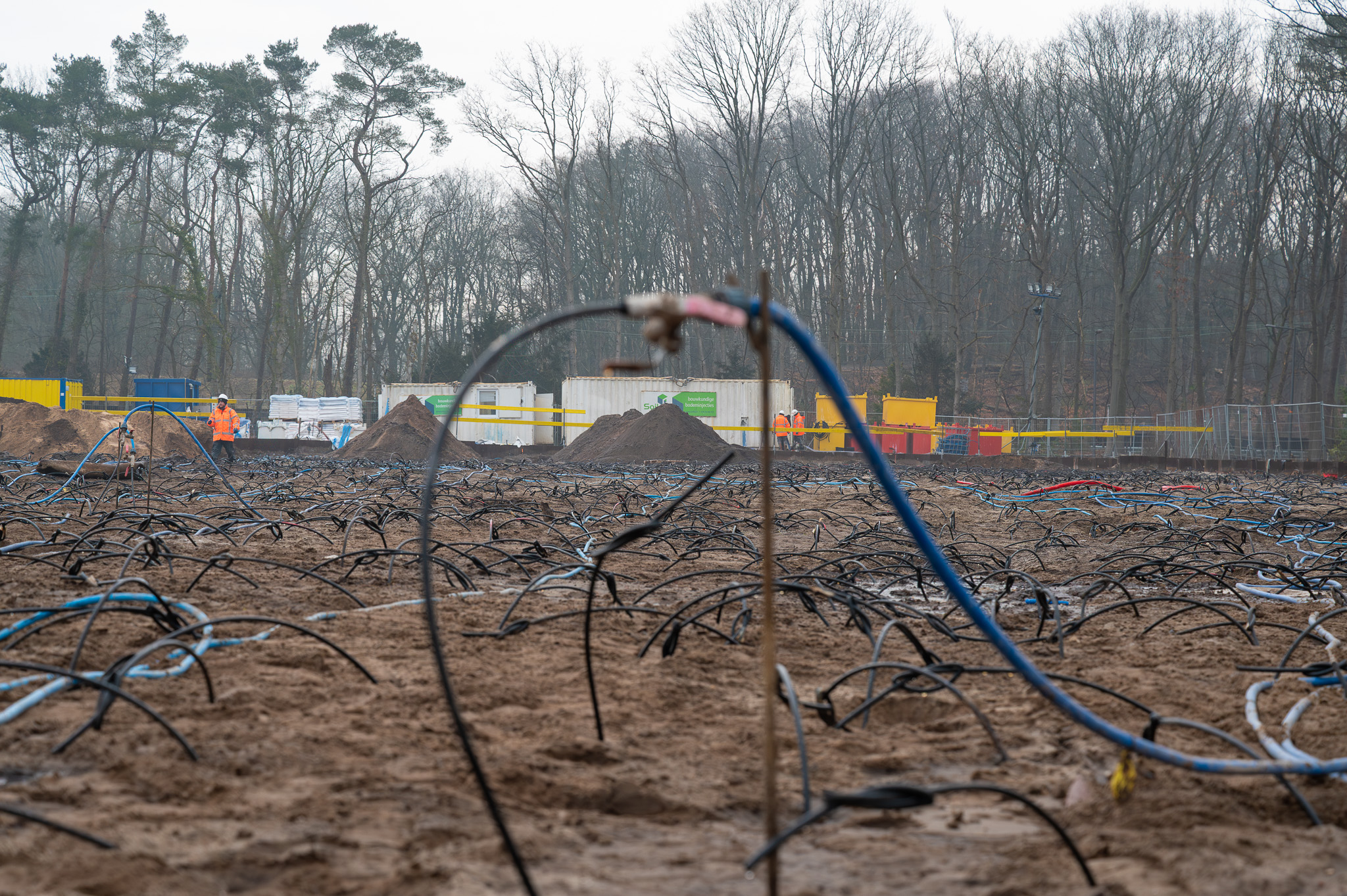 Om problemen voor zowel bouwvakkers en als voor de naaste omgeving (Nieuw ziekenhuis, spoorlijn, bos) te voorkomen koos de aannemer voor de horizontale grondinjectie van Soil-ID.