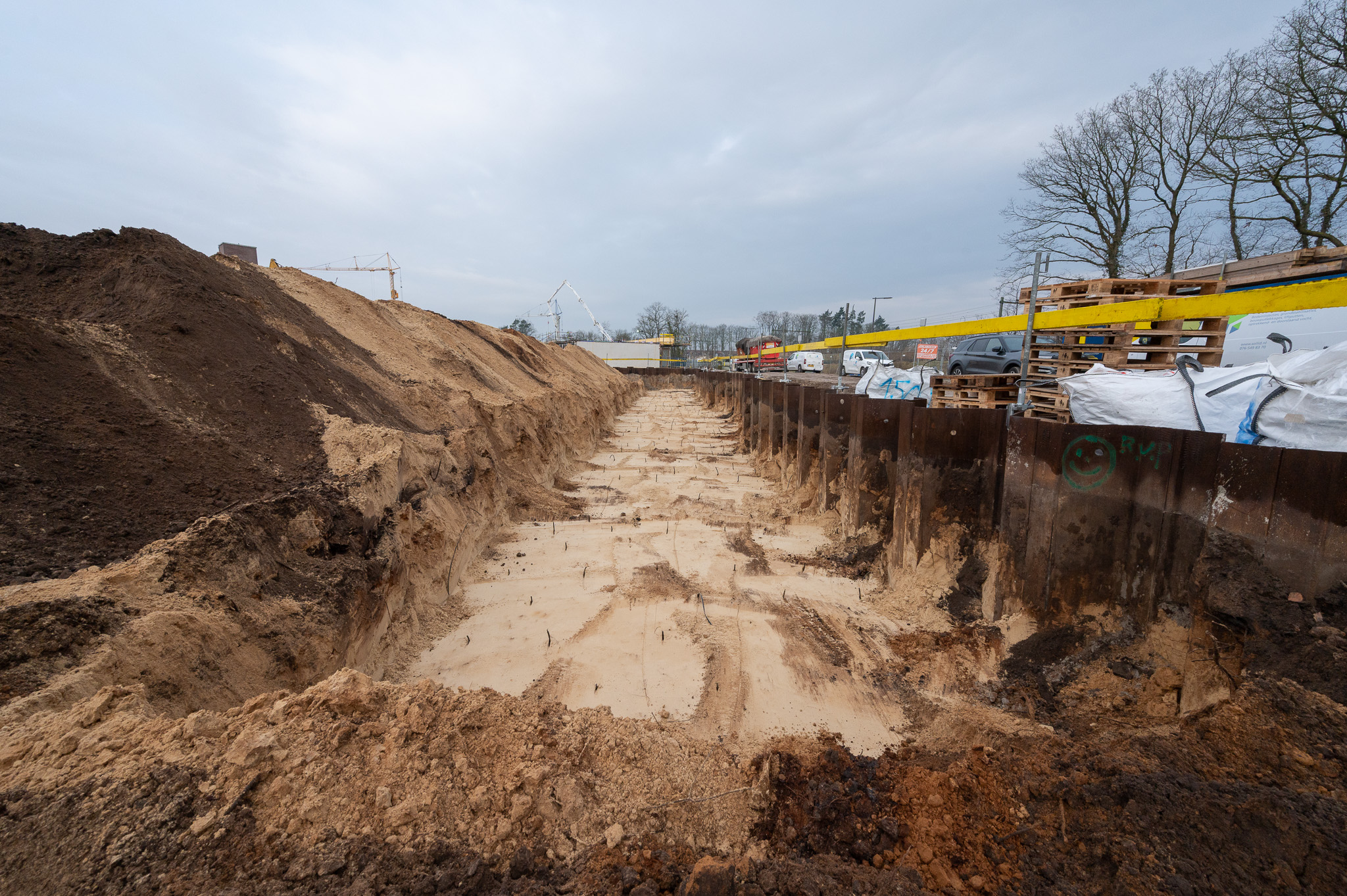 Voor dit omvangrijke project plaatste W-Dam/Wedam (Beek en Donk) de damwanden, verdeeld over 3 bouwkuipen van samen 7000 m2. Daarna verzorgde dit bedrijf ook het inbrengen van de injectieslangen op een diepte van 8 meter onder het maaiveld.